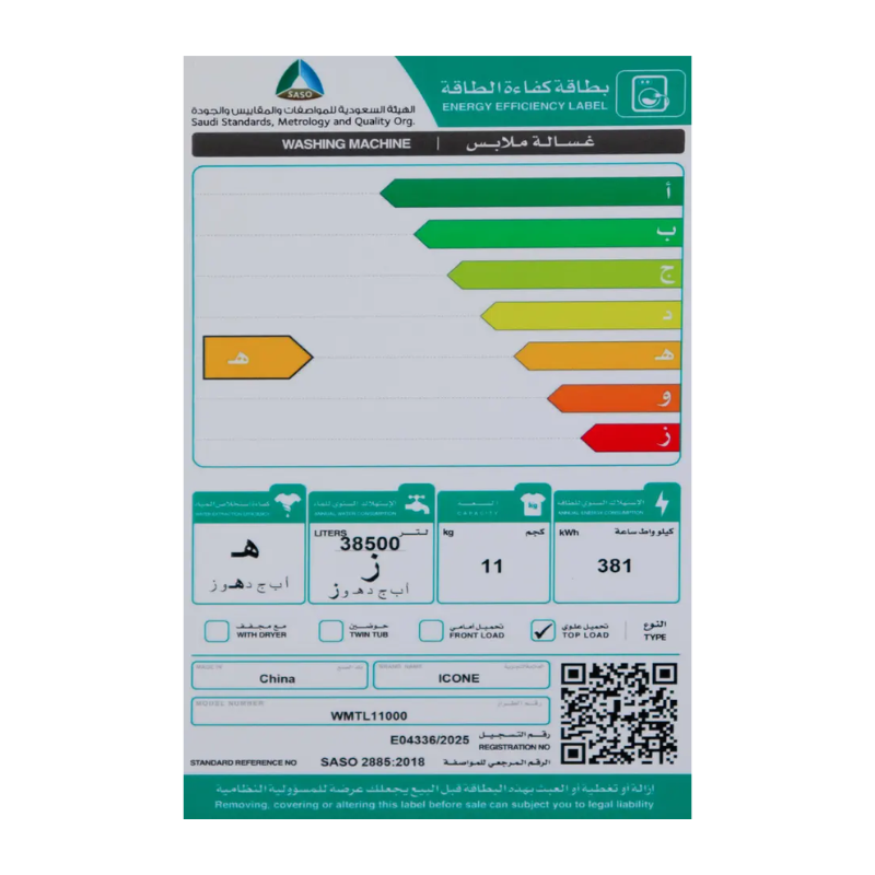 غسالة ايكون أوتوماتيك علوية بغطاء من الزجاج بسعة 11 كيلو WMTL11000