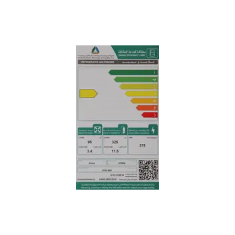 استهلاك الطاقة السنوي : 375 كيلو وات/ساعة