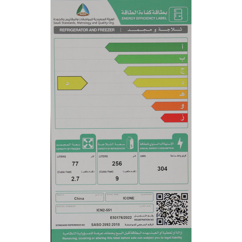 ICN2-551 ثلاجة بابين ، باب مبرد ، باب مجمد