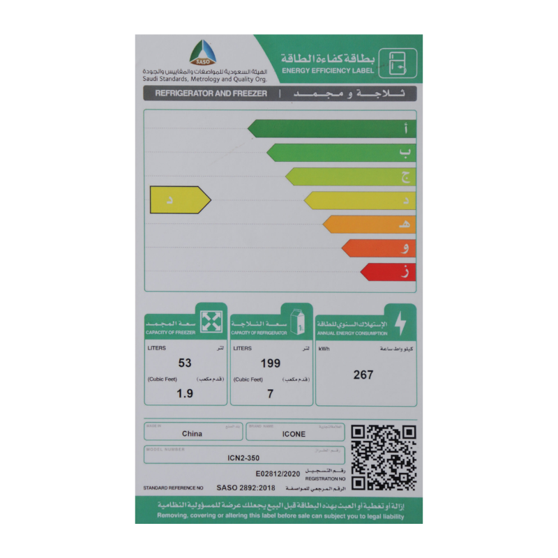 ثلاجة ايكون بابين ثلج - ابيض 8.9 قدم - موديل ICN2-350