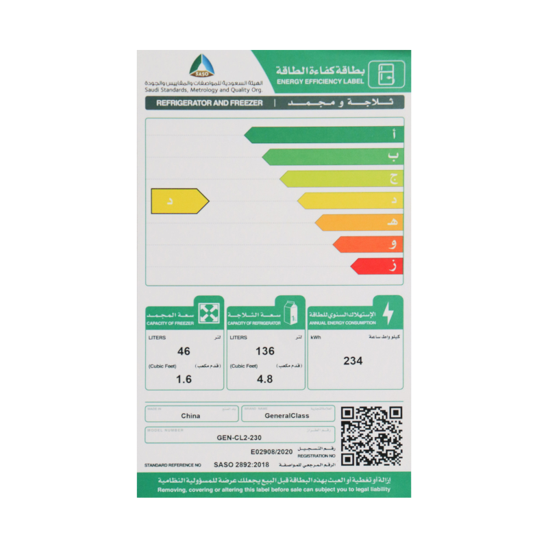 ثلاجة جنرال كلاس بابين ، باب مبرد ، باب مجمد