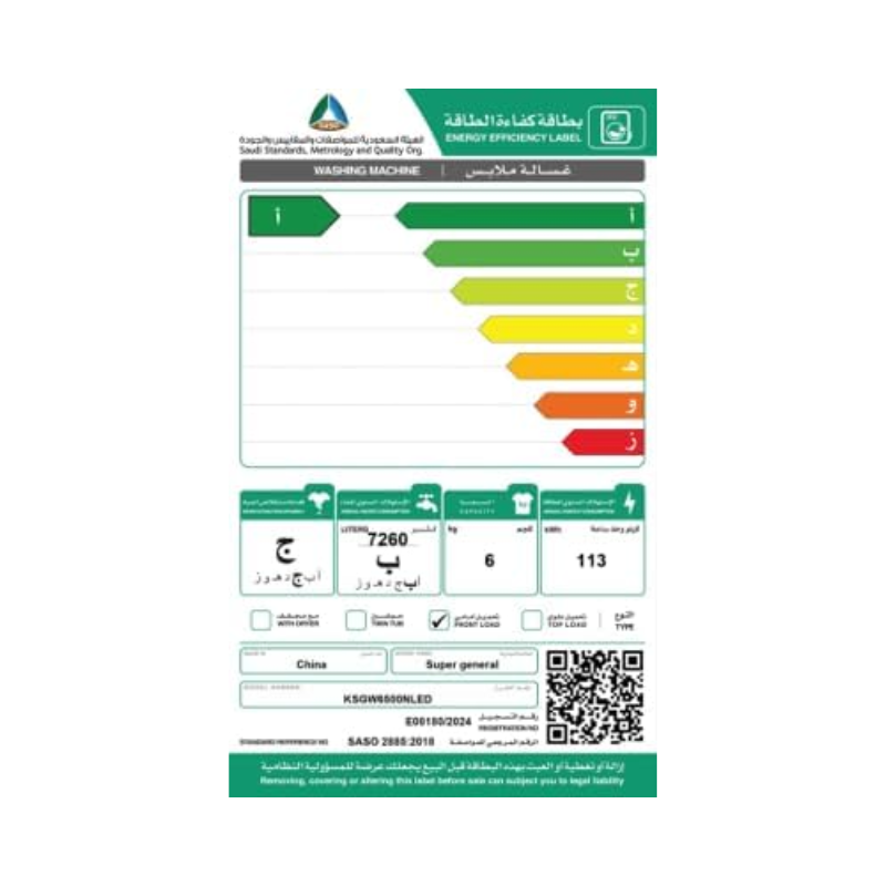 KSGW6500NLED مع ضمان لمدة عامين.